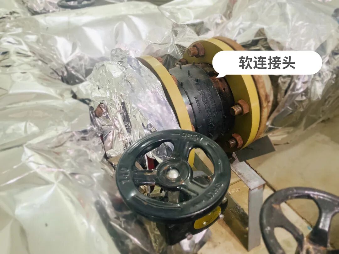 B2层的湿式报警阀室内管道为消防管道,在横向管道中间位置安装了橡胶软连接头和蝶阀,随着交付使用周期越来越长,由于横向管道下方未设置支撑点,管道受到重力的牵引,软连接头就会逐渐崩裂,造成跑水现象。不仅对消防用水造成极大浪费,还要定期更换软连接头和蝶阀。