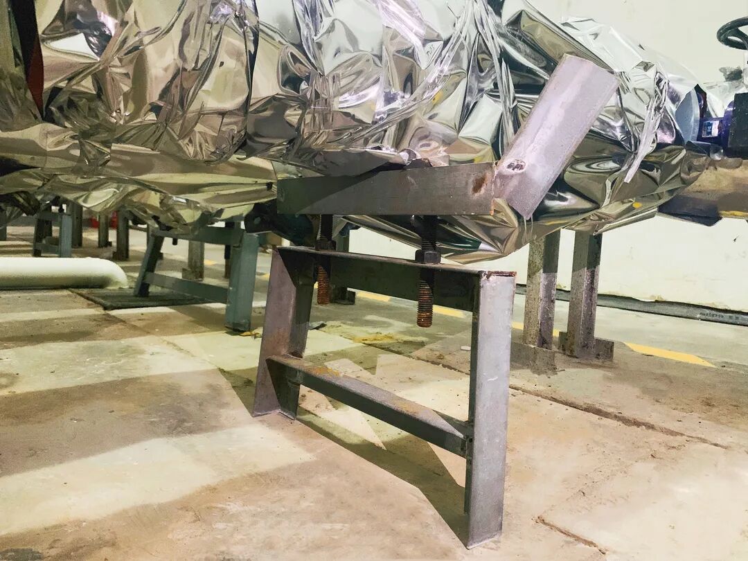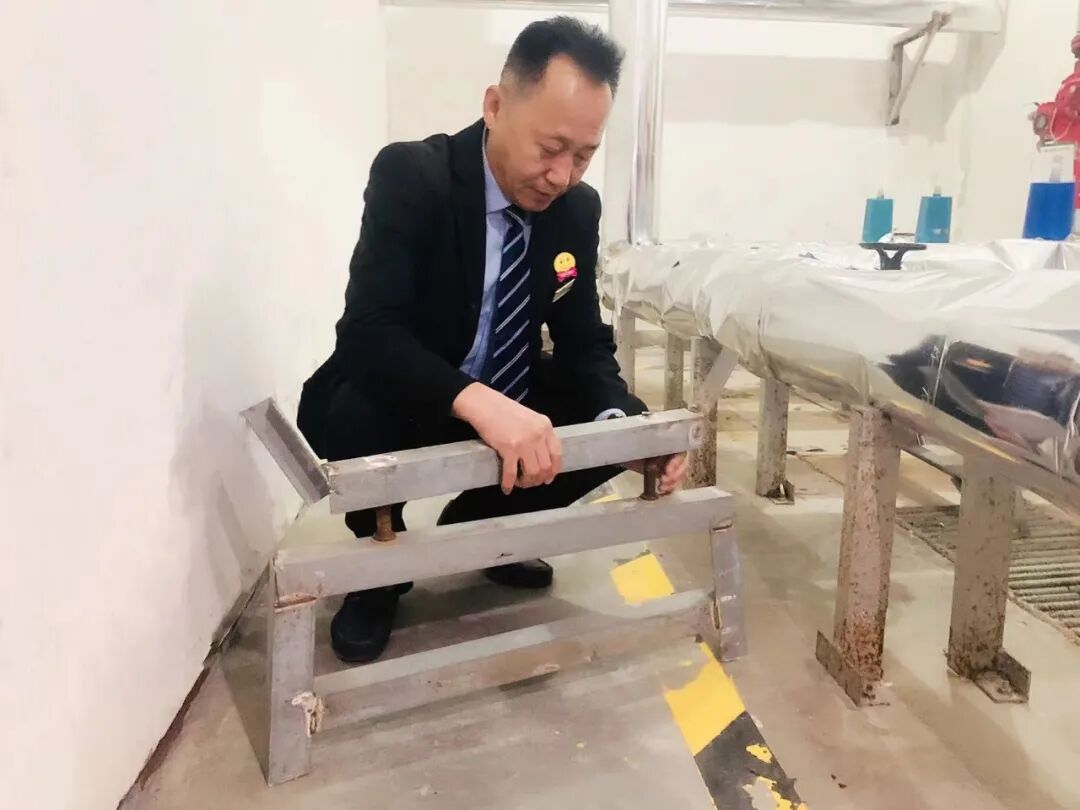 对此问题,李学勤主管看在眼里,记在了心里。他根据以往的工作经验,自主画图设计,利用现有的材料制作了一套可灵活调节高度的支架,把软连接头前方的横管垫起,使其不在下沉进而保护软连接头不错位、不崩裂,延长了软连接头使用寿命的同时减少了不必要的水浪费。