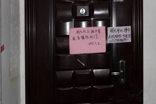 福州的张先生到花苑11号楼3楼,上个月他刚购入这里的一套二手房,这天却发现大门洞开,门锁也坏了,门上贴着两张“强行开门”的告示。